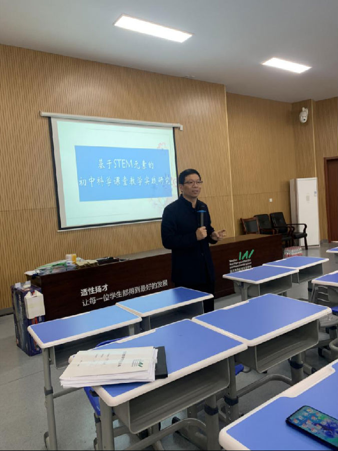 2020年11月30日,谢杰妹名师工作室举行了第8次研讨活动在温州高铁新城实验学习举行,本次活动主题为《基于steam元素的初中科学项目化学习》,通过观课议课、名师报告、学员观点交流等方式进行了充分的研讨。温州市厉建微科学名师工作室,吴宇洁科学名师工作室学员们也一起参与了研讨。