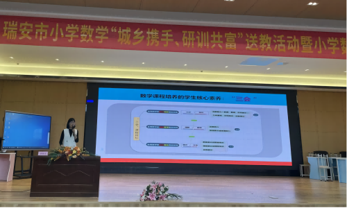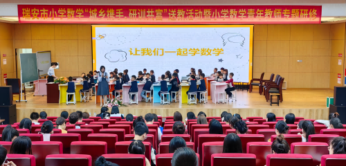 为进一步深化课堂教学变革,提升教师对单元整体视角下新课标、新教学的认知,促进学生核心素养的发展。10月13日,温州市黄静“名师送教”工作室第1次活动在瑞安市马屿镇实验小学顺利举行。特邀浙江省特级教师颜丽函老师莅临指导,温州市黄静“名师送教”工作室全体成员、瑞安市小学数学青年教师专题研修32学时全体学员以及马屿学区、高楼学区的教师代表,近100余人齐聚一堂,共同研讨学习。本次活动分为上午场和下午场,分别由马屿镇实验小学的黄蓓蕾老师和钟鹏琪老师主持。