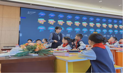 上午第一节课是由瑞安市马屿镇实验小学金茜茜老师带来的《乘法的初步认识》。金老师先通过3幅图吸引学生走进课堂,激发学生主动探究新知的欲望。在活动中让学生体验用加法表示多个数相加的不便之处,根据学生需求,然后顺势而导,自然地引出新的运算符号“×”。本节课金老师立足学生思维实际,遵循学生思维发展规律,带学生深刻理解5×3、4×6的含义后,放手让学生表示3×4,让学生真正在“做”的活动中感受乘法意义。最后,金老师通过“智勇大闯关”继续加强乘法与加法的联系,使学生能更好地辨析两者区别,了解乘法在解决问题中的巧用。