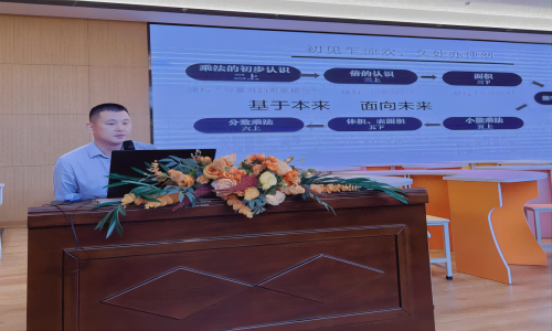 接着,颜特作《素养导向下小学数学单元教学关联递进设计》的专题讲座。首先,颜特在设计结构化特征的课程内容时指出3个注意事项,即:1.内容选择,重视对教学内容的整体分析,帮助学生建立能体现数学学科本质、对未来学习有支撑意义的结构化的数学知识体系;2.内容组织,通过合适的主题整合教学内容,帮助学生学会用整体的、联系的、发展的眼光看问题,形成科学的思维习惯,发展学生核心素养;3.内容呈现,注重数学知识和方法的层次性和多样性,进一步加深和拓宽课程内容。其次,颜特以“运算律”单元为例,依托丰富经典的课例,清晰具体地呈现了“同一单元、分段单元、相似单元”的内在教学逻辑,令与会老师深入体会到单元整体思考背后蕴藏的教材依据、学情依据和理论依据。