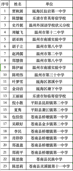 【附录】温州市陈宝荣名师工作室成员名单