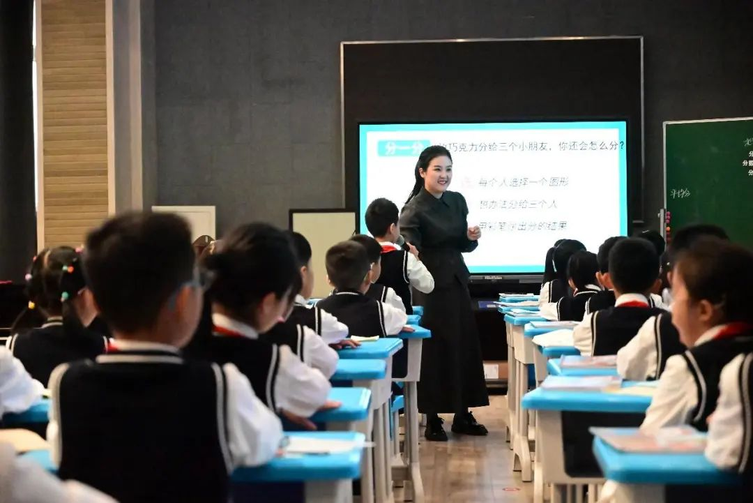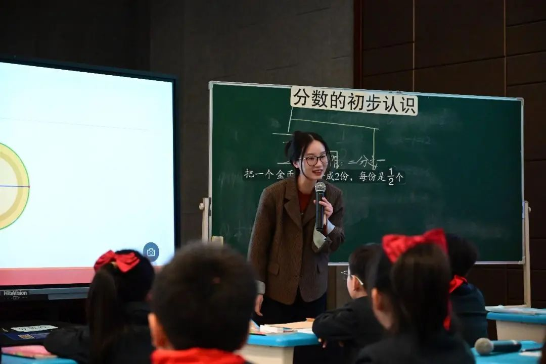 接着,温州市实验小学李铭铼老师带领三年(3)班的学生带来课例《分数的初步认识》。李老师创设情境、巧妙设计教学活动,引导孩子们在动手分巧克力和与小组同学交流的过程中逐渐认识分数这个新朋友。李老师借助直观形象的动态演示,用数形结合的思想加深学生对分数的认识,丰富了学生的认知。