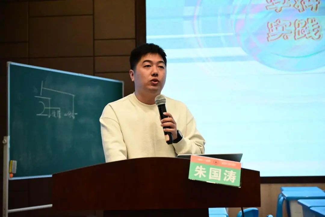 课例展示结束,温州市百里路小学朱国涛老师做《学科实践教学方式下的课堂教学设计改进与思考》的专题讲座。朱老师的分享将理论与实践相结合,有理有据,为我们后续的教学增添新的抓手。