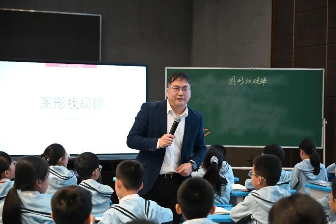 第二节是由温州市教师教育院王炜老师给大家展示的《图形找规律》。上课伊始,王老师由简单的三句话拉近与学生之间的距离,课堂气氛轻松活跃。接着王老师在拼摆三角形的过程中,让学生逐渐发现小棒根数的规律。从小图形入手,简单举例,列举出三种找规律的方法,并借助对比和推理找到最简便的方法来解决问题。整节课王老师巧妙地将数形结合,引导学生在探索中发现规律,既提高了学生的数学兴趣,又锻炼了他们的数学思维与解决问题的能力。