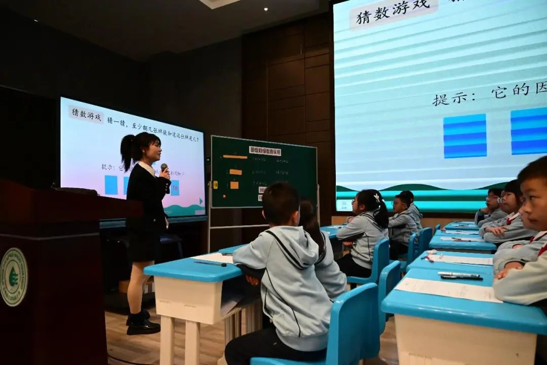 首先,江滨实验小学赵敏老师携手五年(1)班的孩子们展示了课例《因数和倍数的认识》。赵老师从活泼有趣的“扫雷”游戏引入,引导学生们通过画一画、找一找等活动,逐步认识、理解因数和倍数,学会找一个数的因数与倍数。她充分利用三次的小游戏,践行“寓教于玩”的理念,帮助学生在轻松愉快的氛围中掌握知识。