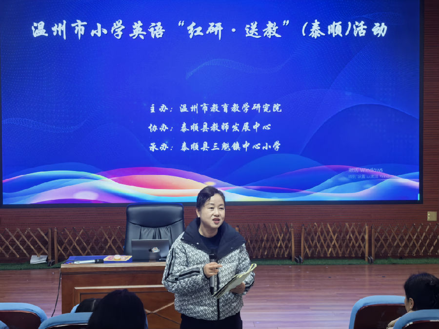 2025年1月2日—1月3日,温州市教育教学研究院小学英语教研员沈雨老师带领名师工作室学员来到泰顺县三魁镇中心小学,举办温州市沈雨名师工作室第十九次活动暨温州市小学英语“红研•送教”(泰顺)活动,旨在发挥名优教师辐射引领作用,促进乡村(镇)教师专业发展。泰顺县小学英语教研员毛淑芝老师和泰顺县骨干教师代表参加本次活动。本次活动聚焦课例展示、设计阐释、经验交流和专题讲座等,为老师们搭建了一个交流学习、思想碰撞的平台。