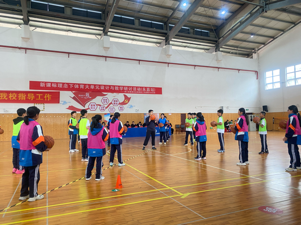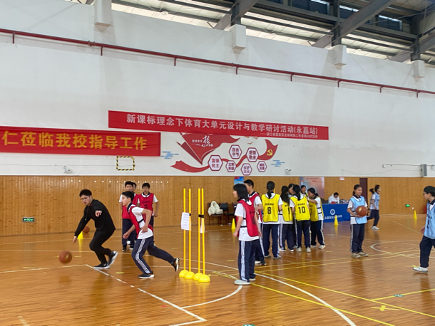 接着,永嘉县岩头镇中学的叶杭娜老师带来水平四《篮球:行进间运球急停急起练习方法》。叶老师先通过行进间运球急停急起至标志桶等单一练习夯实基础,后在弱防守下开展组合练习,设置 “影子跟随” 游戏增强对抗体验,搭配体能课课练,全面提升学生身体素质与技术水平。