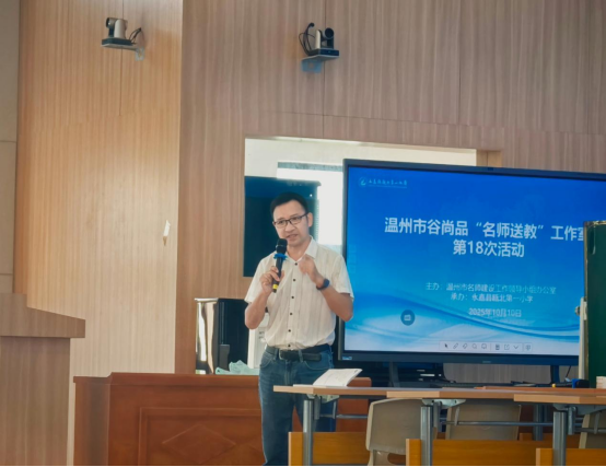 2025年10月10日谷尚品名师工作室在永嘉县瓯北第一小学开展以“聚焦审辩思维,探索单元视角下结构化教学”为主题的教学研讨活动。