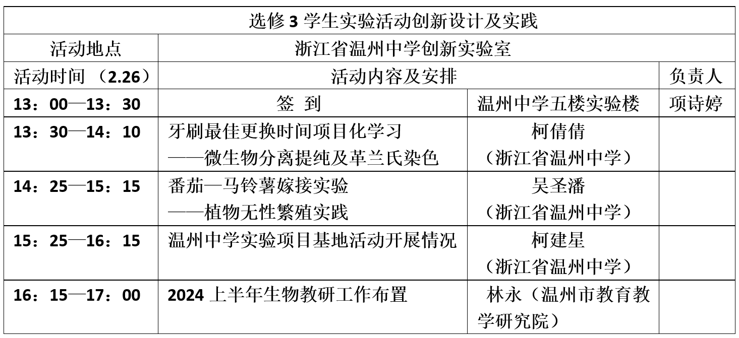 在 温州中学举行活动,时间 0.5 天。