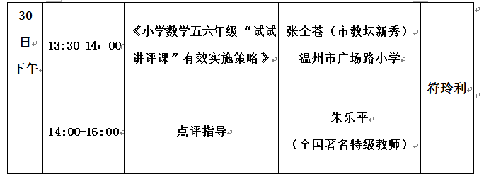 注:29日地点:龙湾区永兴一小,30日地点:乐清市大荆一小。