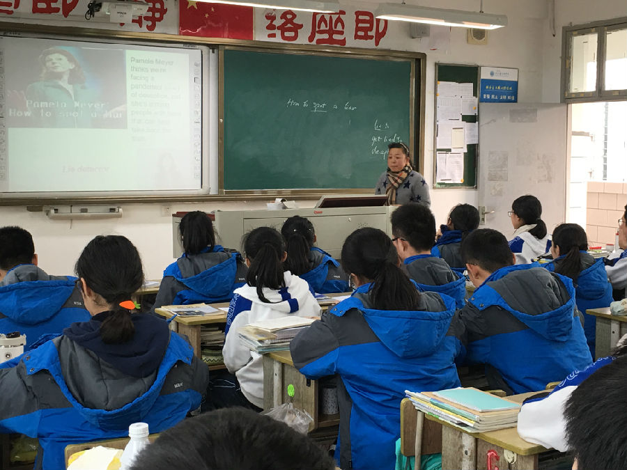 叶茫茫老师在高一9班展示了以“How to spot a liar”为话题的课堂。叶老师从学生的实际出发,从词汇着手,让学生们熟悉视频文本内容。接着以liar为切点,让学生展开讨论:Do you often lie to other? Are all lies harmful? 以此引入how to spot a liar. 课堂上,叶茫茫老师拓展了视频演讲人的相关信息。整节课,学生对于老师在学案中问题设置能积极主动地获取信息,老师铺设到位也减轻学生对课外内容的心理负担。