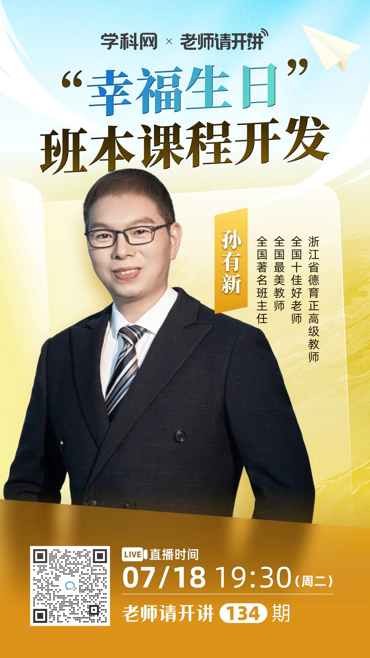 主讲:孙有新,德育正高级教师,浙江师范大学附属瑞安高级中学(瑞安市第五中学)班主任、思想政治教师,浙江省首批中小学班主任工作室领衔人、浙江省名师网络工作室领衔人,《教师博览》《瑞安慈善》封面人物,《德育报》“班主任之星”。自从1999年参加工作以来,一直担任班主任。他荣获全国十佳好老师、全国最美教师、浙江省师德楷模、浙江省优秀教师、新时代浙江省“万名好党员”、温州市名班主任、温州市最美老师、瑞安市首届功勋班主任等20多项县级以上荣誉称号,荣获2014年浙江省中小学班主任基本功大赛高中组第一名。所带班级多次被评为温州市先进班集体、瑞安市先进班集体。曾参与编写8本教育著作,30多篇文章在省级报刊上发表,在全国各地演讲130多场。他的先进事迹被学习强国、教育部新闻办官微、中国教育报等70多家媒体报道。