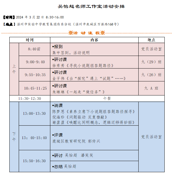 活动内容: 开课:工作室学员 金子伟 徐秀秀 朱琳琳
