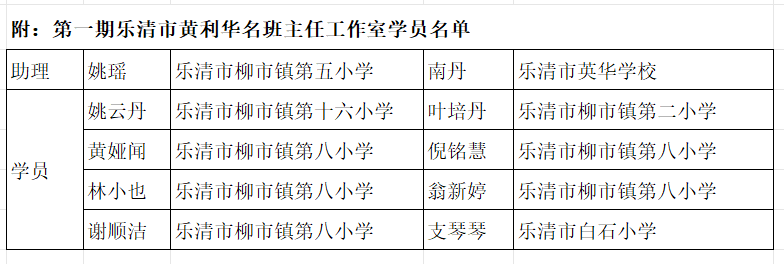 附第三期温州市黄笑蕾名班主任工作室学员名单