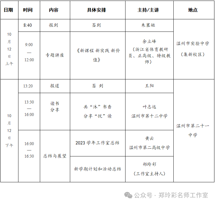为了深入贯彻《义务教育体育与健康课程标准(2022年版)》精神,提升工作室学员的专业素养,根据温州市郑玲彩“名师送教”工作室”活动计划,现决定举行第11次工作室活动,