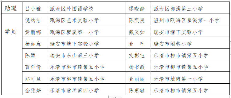 附:第三期温州市黄笑蕾名班主任工作室学员名单
