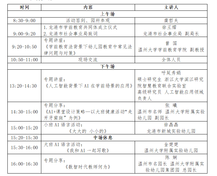 为深入贯彻落实《中华人民共和国学前教育法》,全面提升幼儿园依法治园能力,同时立足未来教育发展,探讨人工智能前沿领域在教育教学中的运用与实践,推动幼儿园教育高质量发展。特定开展工作室第9次活动,并对相关事项做一下安排: