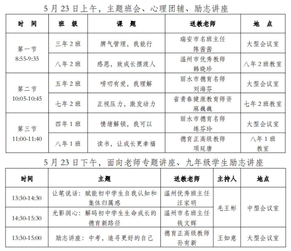 (2)5月23日:送教活动,地点:龙港市云岩学校。
